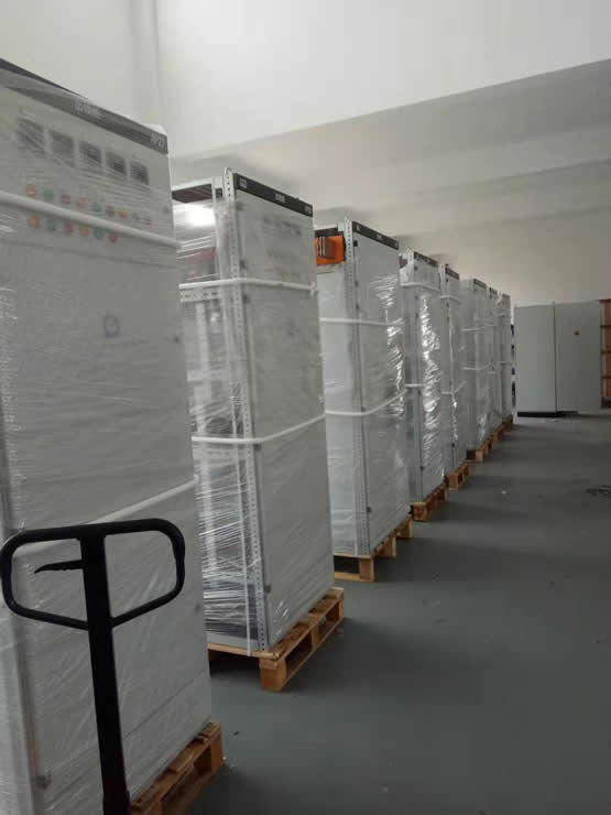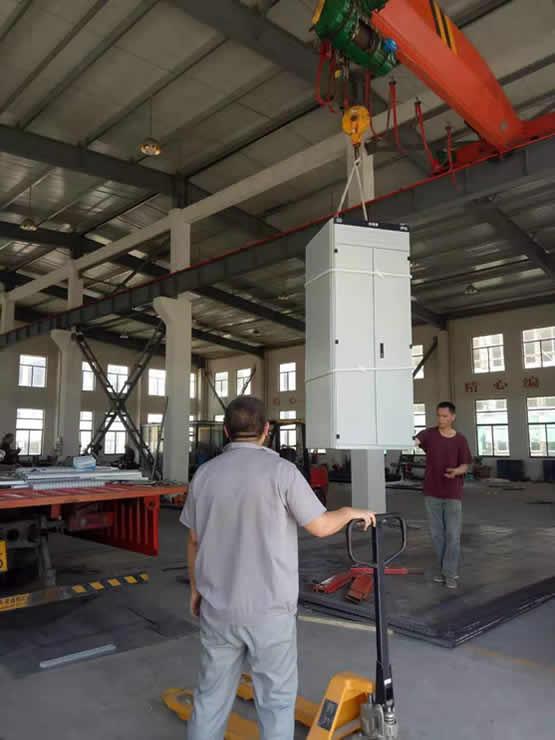車間工人正在將電源柜柜體卸車