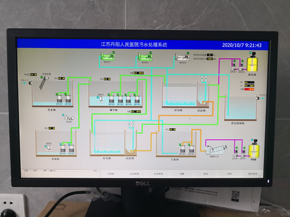 圖為我司編制的該醫(yī)院污水處理站PLC操作流程畫面