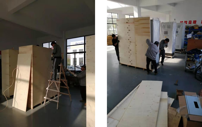 圖為第二生產(chǎn)車間為即將發(fā)運(yùn)的產(chǎn)品釘包裝箱
