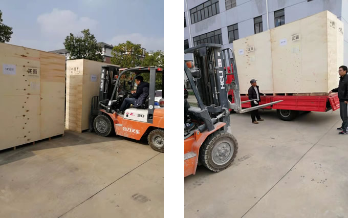 圖為正在裝車發(fā)運(yùn)至廣州大陵河的PLC雙拼柜